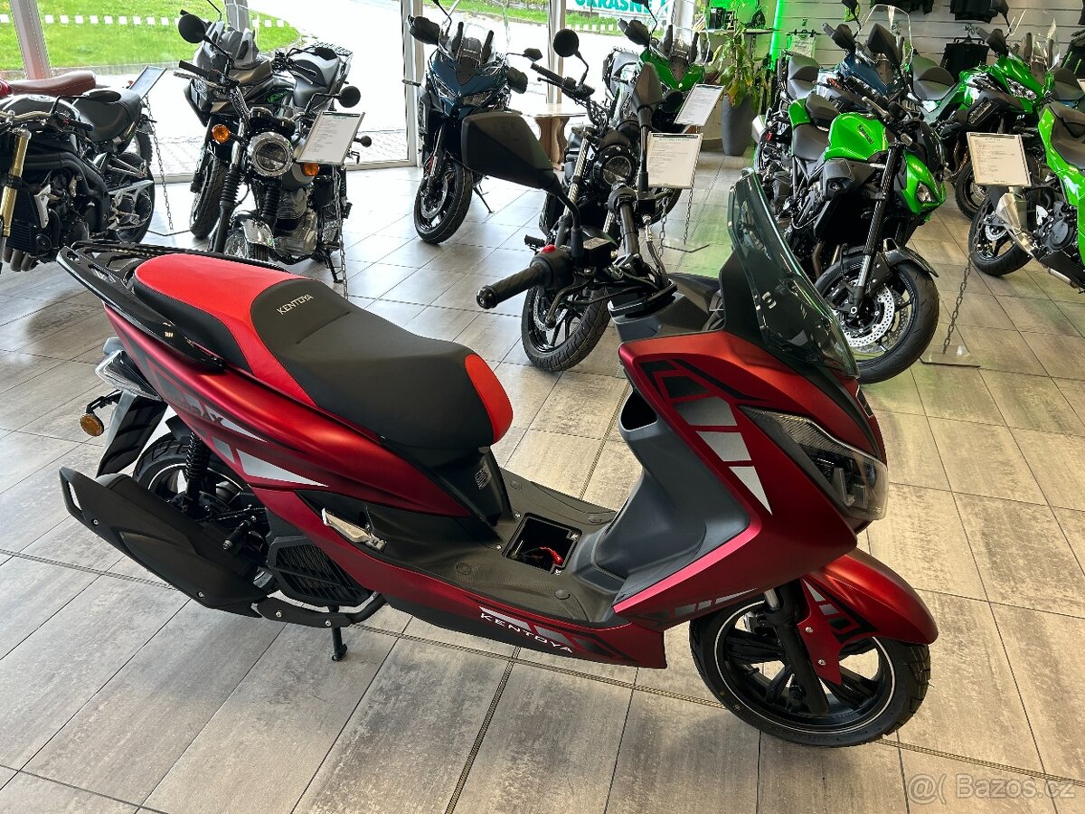 Živý, rychlý, úsporný - pokud jste si řekli 3x ano, Vaše volba je jasná. Novinka se zcela novým vodou chlazeným motorem disponuje výkonem 12 koní, což je nejvyšší výkon, který kdy Kentoya v této třídě nabídla. Jízdní pozice je pro ostatní konkurenci měřítkem komfortu. Motor přináší doposud nepoznanou akceleraci ve všech otáčkách, a to při nízké spotřebě. Full led světlomety, silné kotoučové brzdy a velký úložný prostor definují budoucnost, kudy se skútry Kentoya budou ubírat.