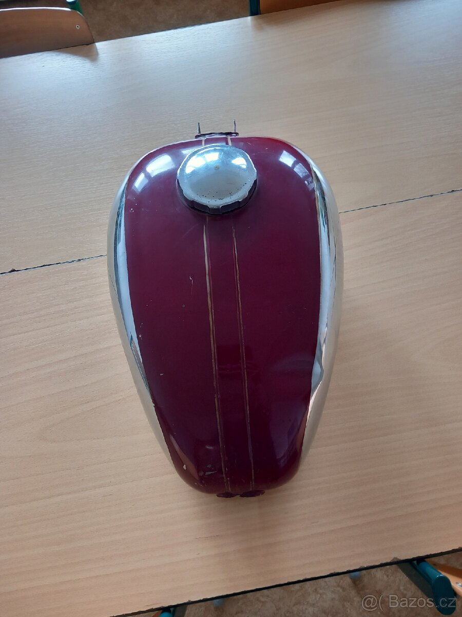 Nádrž Jawa 250 - [12.2. 2026]Nabízím nádrž na jawu 250 ,nádrž má šroubovací boky ,samotná nádrž je pod barvou pozinkovaná a chromované boky .