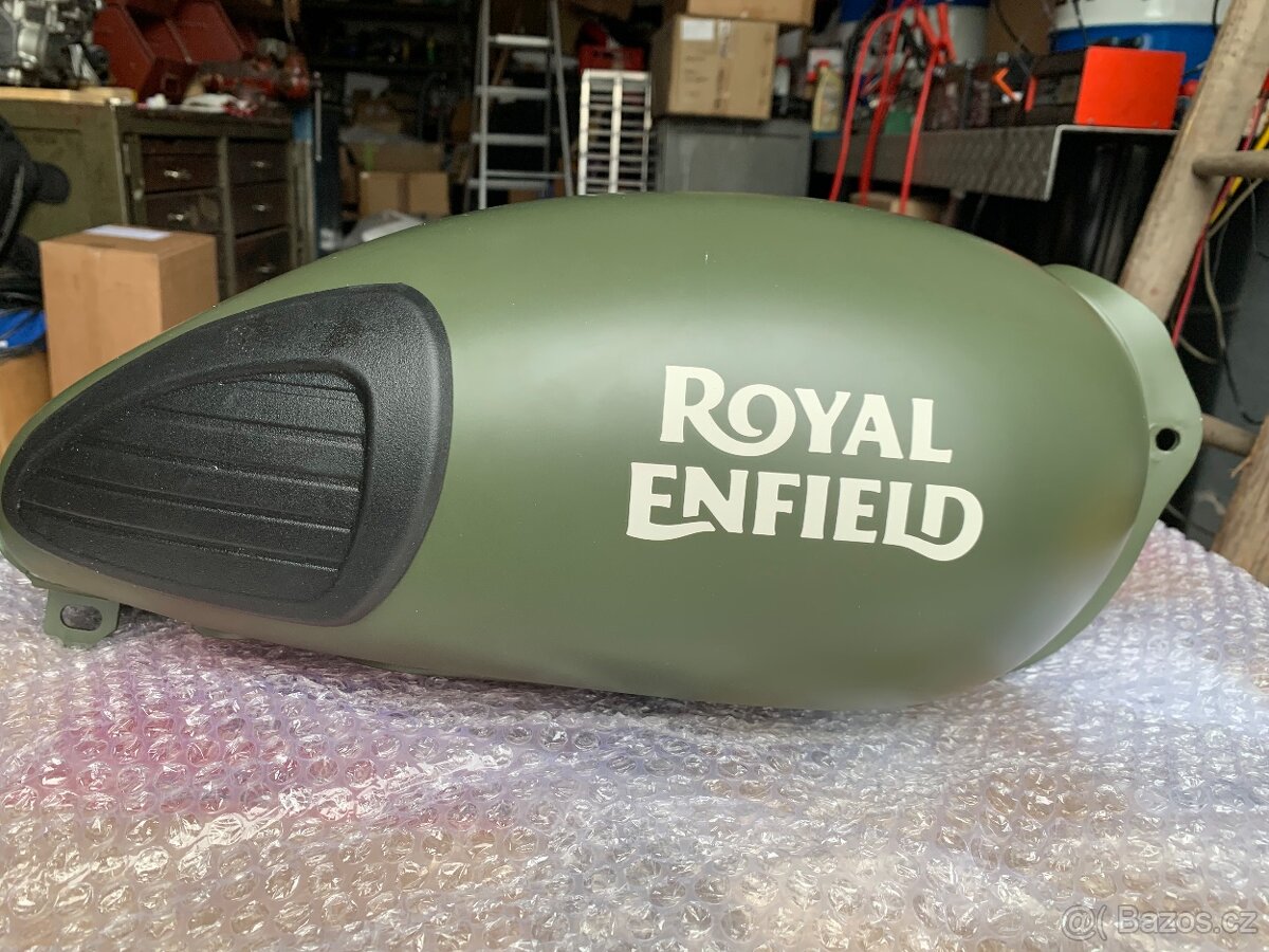 Nádrž Royal Enfield 500 - [13.2. 2026]Nádrž Royal Enfield 500,zelený.Nádrž je nový,bez koroze a bez poškození.