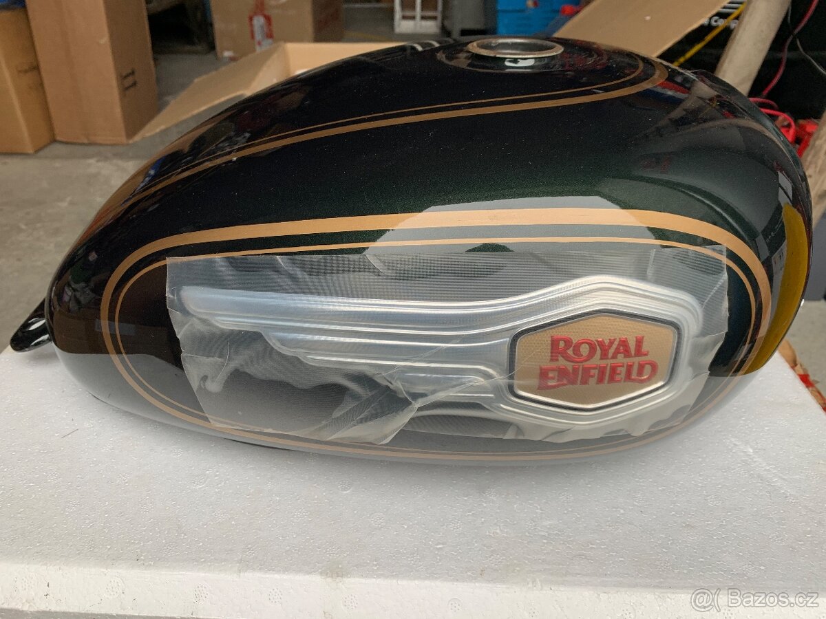 Royal Enfield 500-nádrž - [13.2. 2026]Nádrž na Royal Enfield 500,zelený mat.Nádrž je nový,bez koroze a bez poškození.