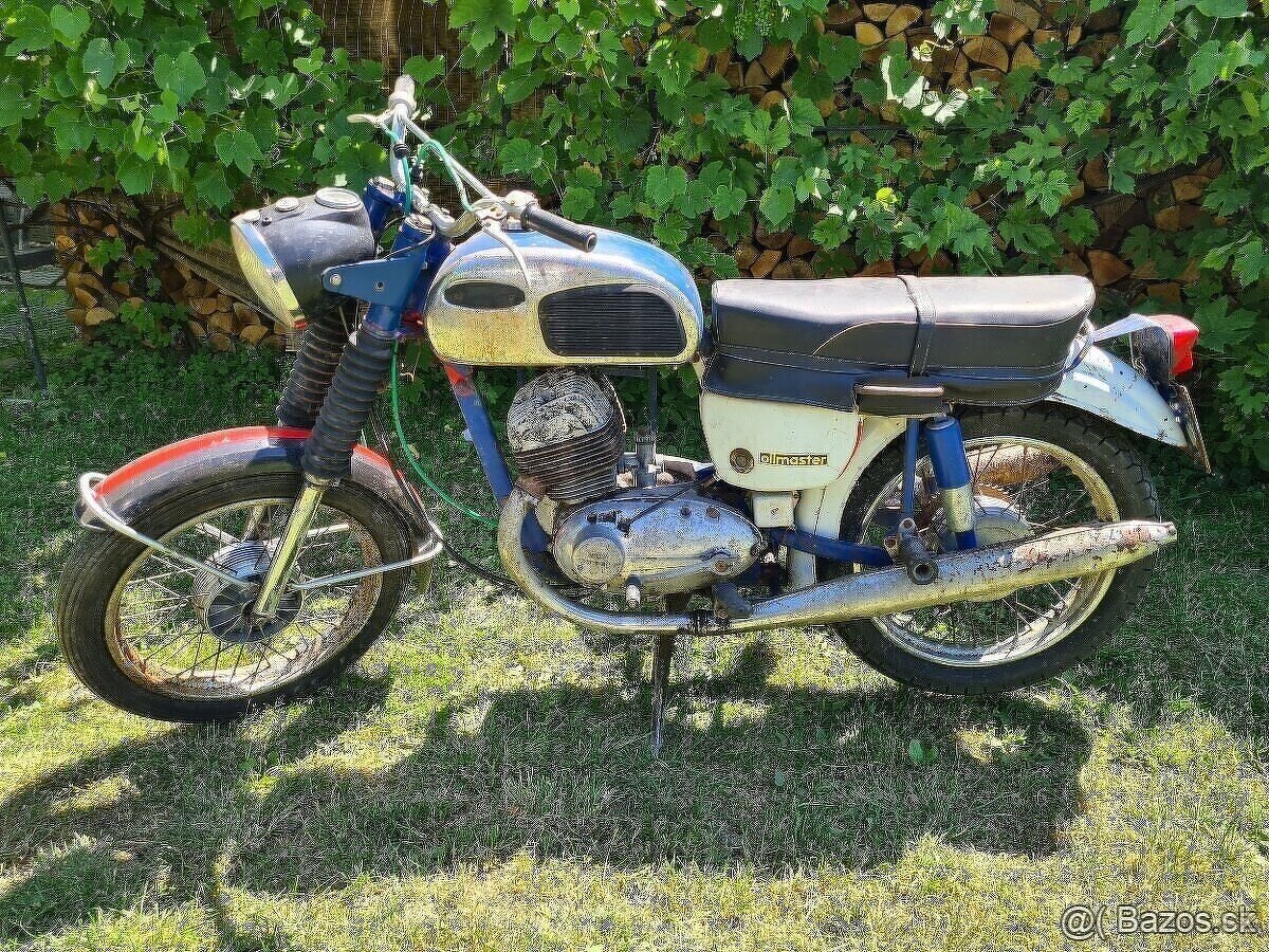 Jawa 350/362 californian r.v197-, original štitok, vsetky cisla zhodne, moto bez replík, Nadrz bez preliačin a z vnútra bez hrdze, dovoz Taliansko, žiaľ prestriekana ale pod farbou original čierno-červena, nalezovy stav bez T.P.