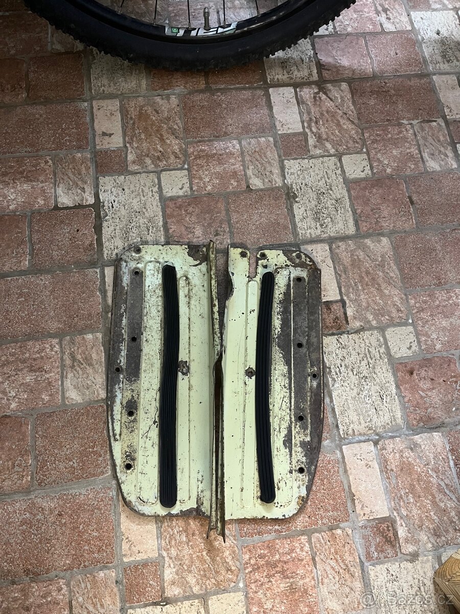 Sada revma plech a nášlapy Jawa pionýr - [25.1. 2026]Prodám tento revmaplech a podlážky na 05, 20. Stav viz foto.