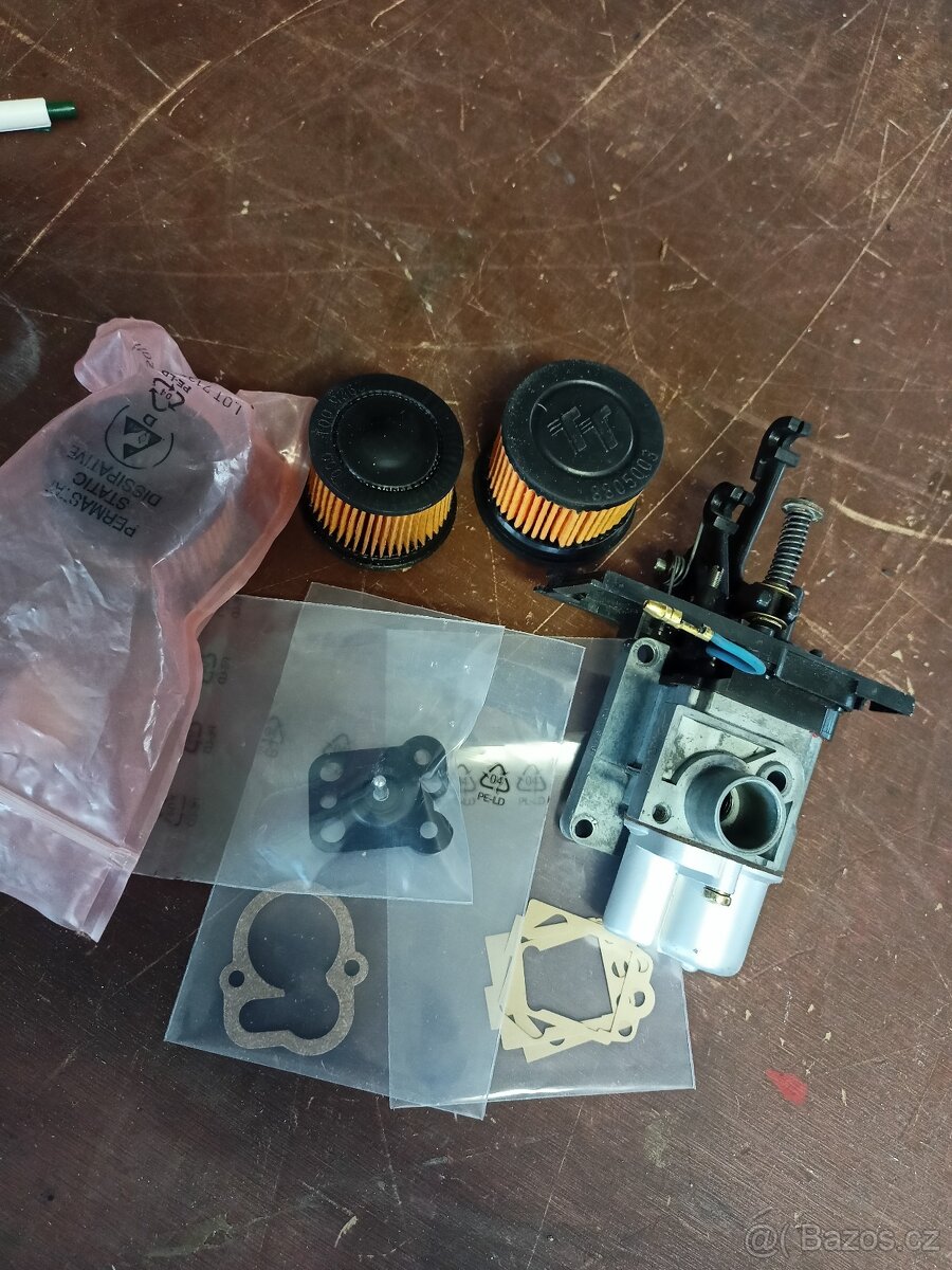 Karborator + 3 x vzduchový filtr těsnění pod plovák a desku a membrana