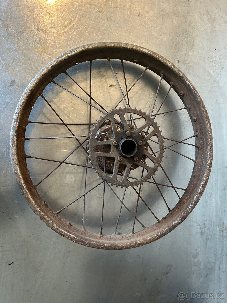 Prodám kolo na motocykl ČZ Speciál z předválečné doby s Rozetou. Cenu nabídněte.