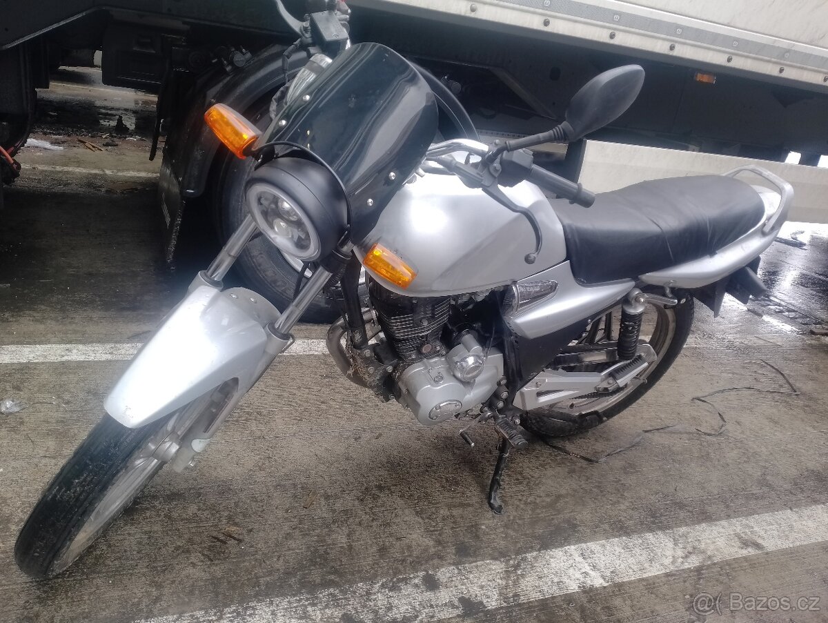 jednoduchý a odolný 125/ 4t motor.. startuje na šlápnutí..motorka má startér i nakopávačku, 5kvalt.. dobré obutí, STK 8/28 .. vhodná na naučení, nebo do města.. max rychlost okolo 100-110km/h..