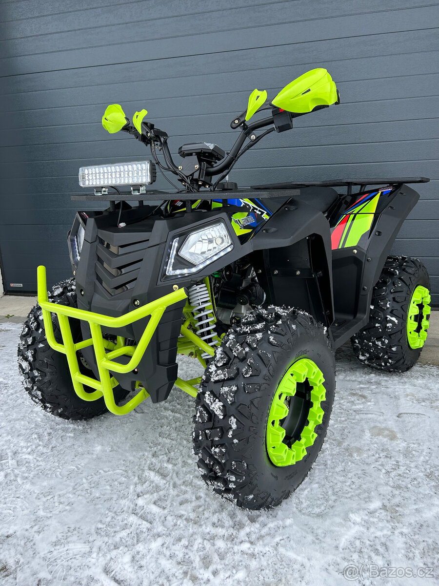 Čtyřkolka RFZ 250 je vhodná pro dospělé i větší děti (výška jezdce cca od 140 cm). Osazena je velkými 10“ koly, bezpečnostními rámy, kryty, světly, přední LED rampa, tažné zařízení v ceně. Čtyřkolka má motor léty ověřené konstrukce GY6 s automatickou převodovkou (jedna rychlost vpřed + zpátečka)