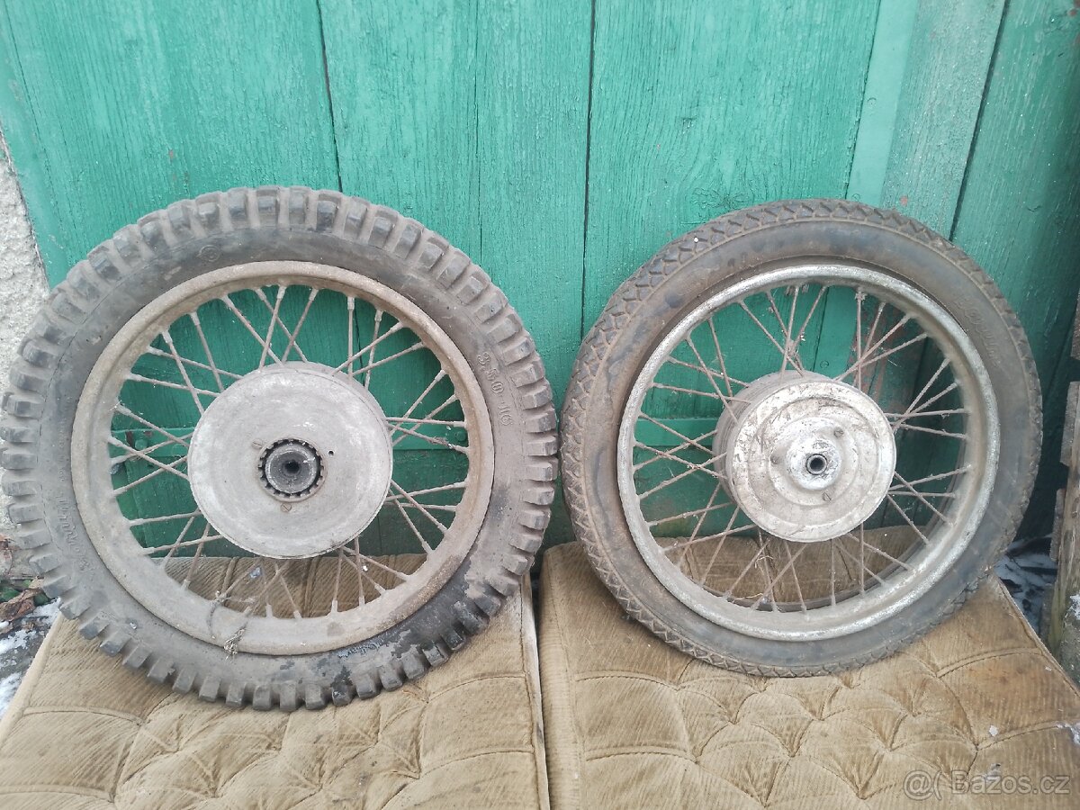 Jawa 555/550 kola - [11.2. 2026]Prodám kola na Jawu 555 výplet pevný nové pneu nové duše obě nové brzdové lanka nové lanko náhonu+ nový náhon v případě seriózního zájmu mě kontaktujte rád zodpovím více info…
