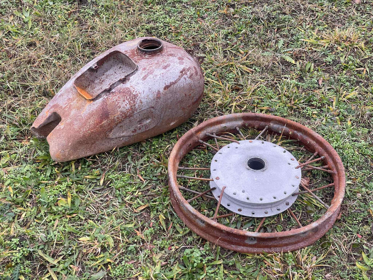 Prodám nádrž a kolo na Dněpr. Nálezový stav viz foto.