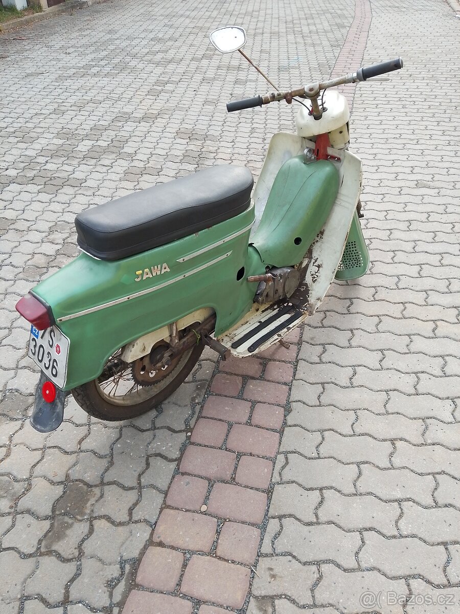 Prodám Jawa 50/20, r.v. 1965, nová STK, vše co na moto chybí je v bedně k motorce .Motor se točí, motorka k celkovému zprovoznění... Cena 19 tis