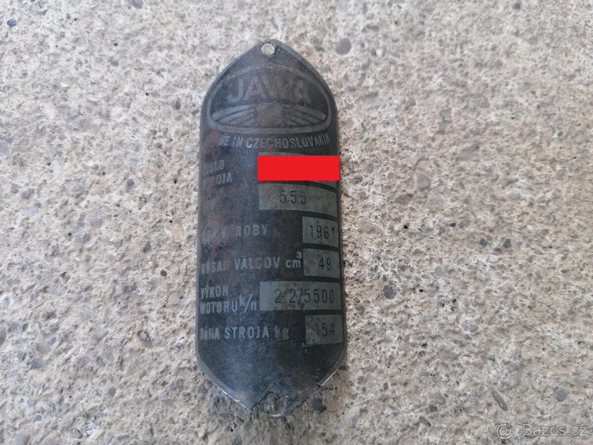 Predám originál pôvodný štítok na Jawu 555. Rok výroby 1961. Cena 1180 kč. Slovensko- Myjava- 8km od hraníc