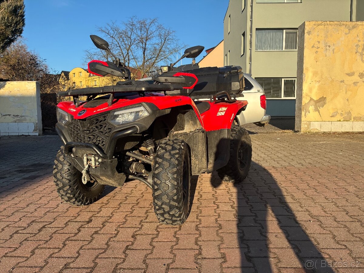 Prodám čtyřkolku CF moto 520 rok 2023 s posilovačem řízení,kategorie T3B .Koupená ve Warmup Liberec jako předváděčka v lednu /2026.Před prodejem po servise,najeto 2200km .Ještě rok v záruce.Prodám ,tak jak je na fotkách, včetně příslušenství(radlice a zadni box)Dohoda na mistě možná