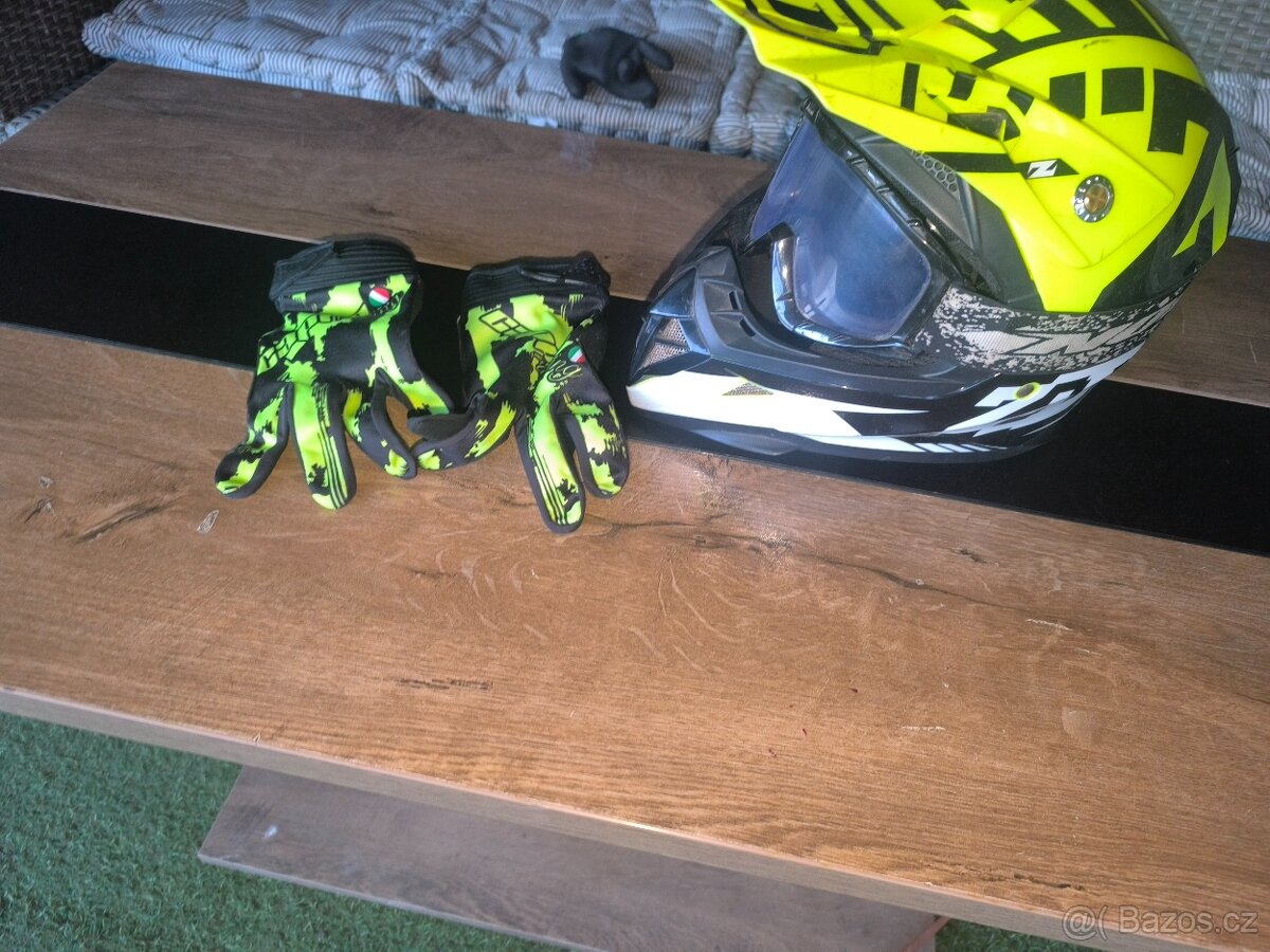 Dobrý den prodávám motokrosovou helmu žádný poškozený jenom pár škrábanců velikost s děcka i slevim