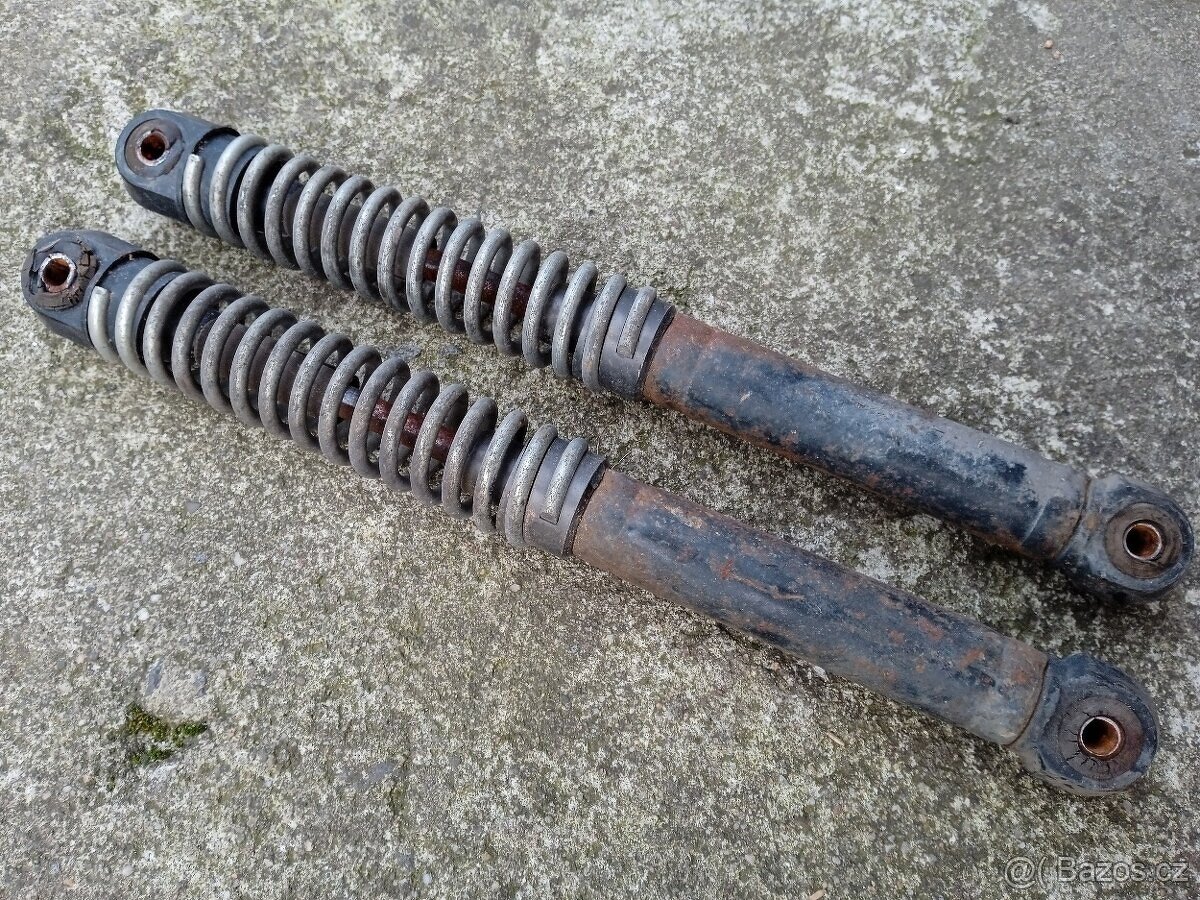 Prodám zadní tlumiče Babetta 210. Originál, funkční. Cena za pár 400kč.
