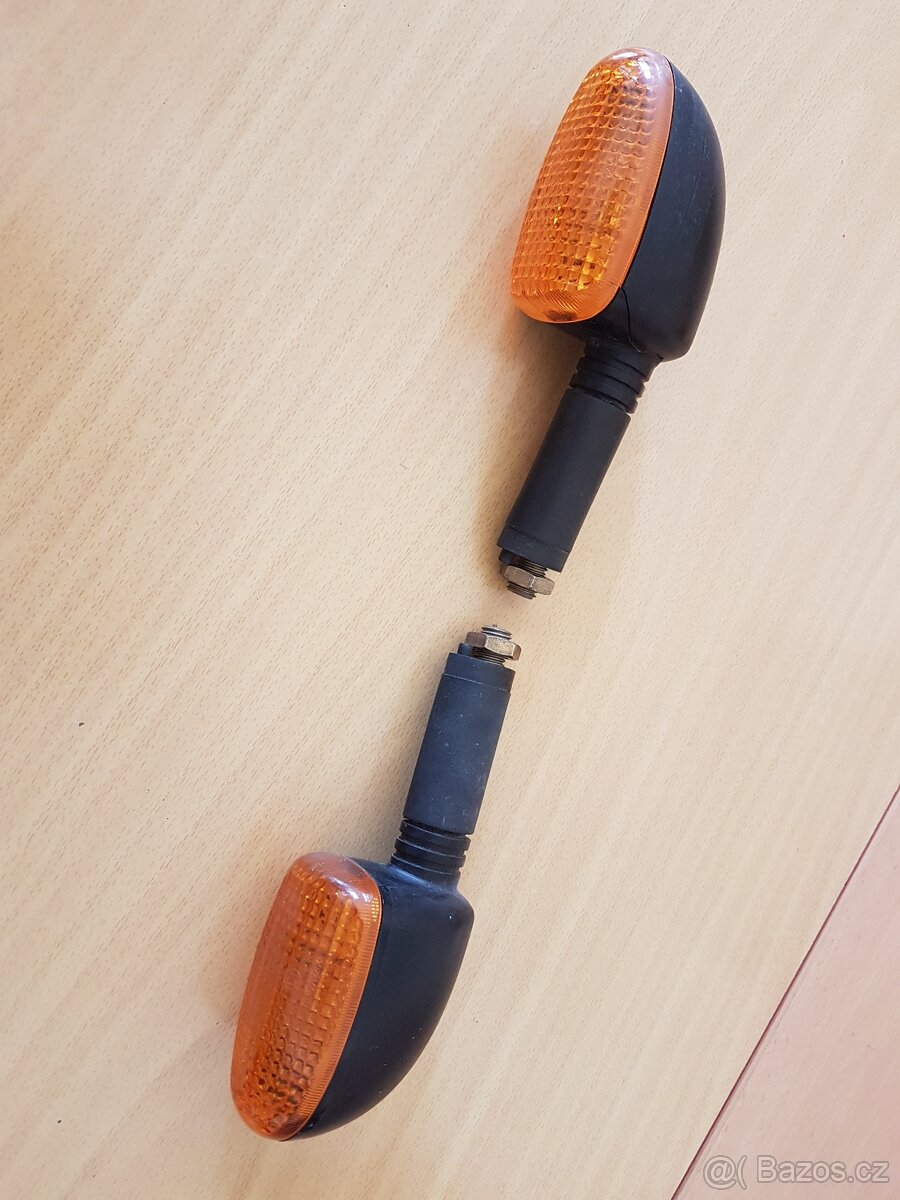 Nabízím přední blinkry na BMW G sérii. Možno použít i pro jiné typy motocyklů BMW. Stav použitý, jeden černý plast má prasklinu, opravitelnou, viz. foto, jinak zachovalé a funkční. V případě zájmu, prosim, volejte nebo využijte e-mail, na sms nereaguji, děkuji za pochopení. Cena za pár 1.200,- Kč.
