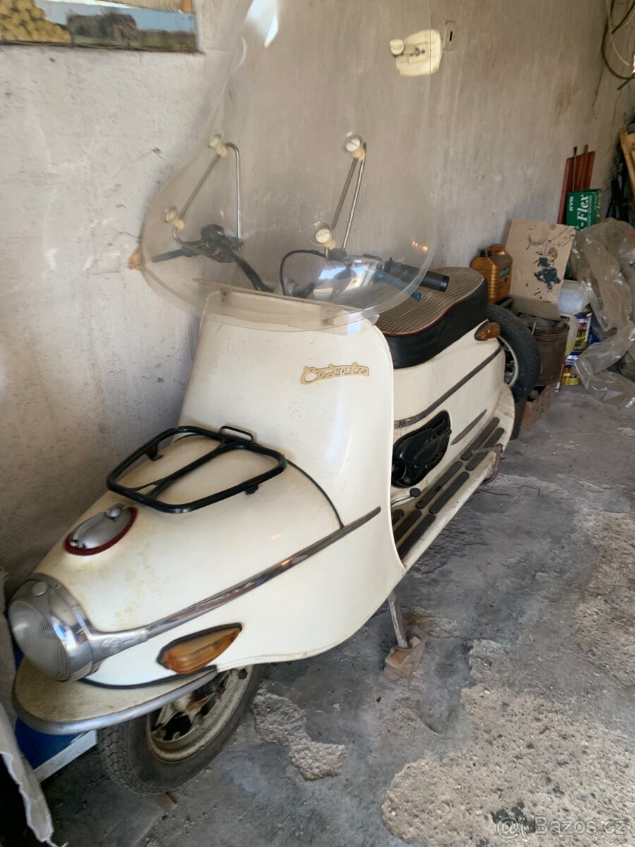 Prodám motocykl / skútr Čezeta 175 , typ 502.00 , 12 V , lidově označovaný jako - Prase , r.v.1963 , k motorce jsou i různé náhradní díly - karburátor , řemeny - ventilátoru , řetěz - hlavní i vedlejší , atd . , funkci pojízdný. Je k němu technicky průkaz ,Více informací po telefonu