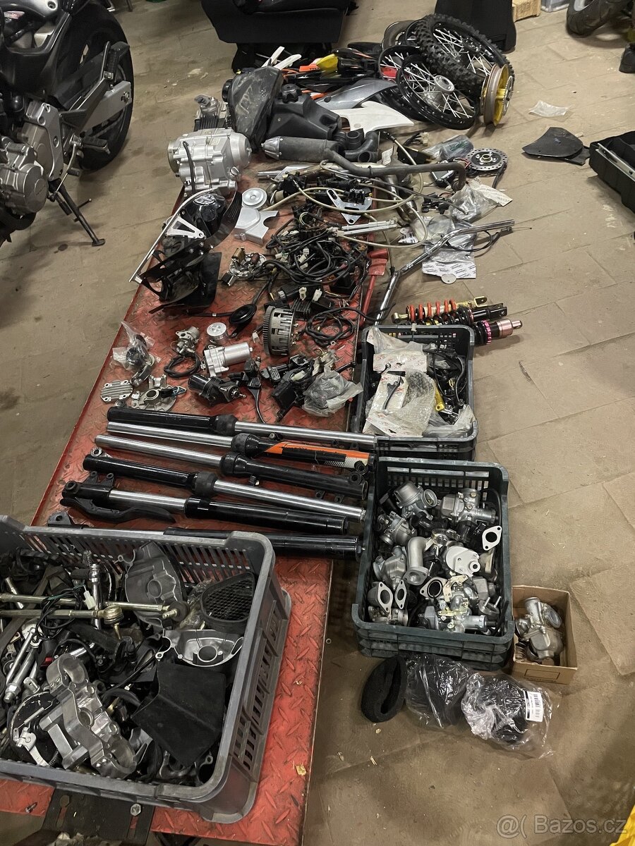 Náhradní díly na dirtbike, dětské 4kolky. Mám i rám nebo dva na pitbike. Na dětskou čtyřkolku mám kapotu a další. Prodám po částech. 90% dílů jsou nové. Kola pouze 12-14.