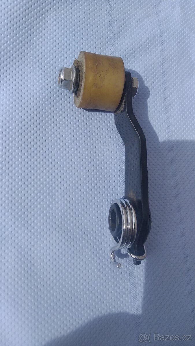 Napínací kladka s pružinou . pružina napínáku řetězu a kladka jsou nové 900kč. Silikonové kluzaky řetězu,700kč.