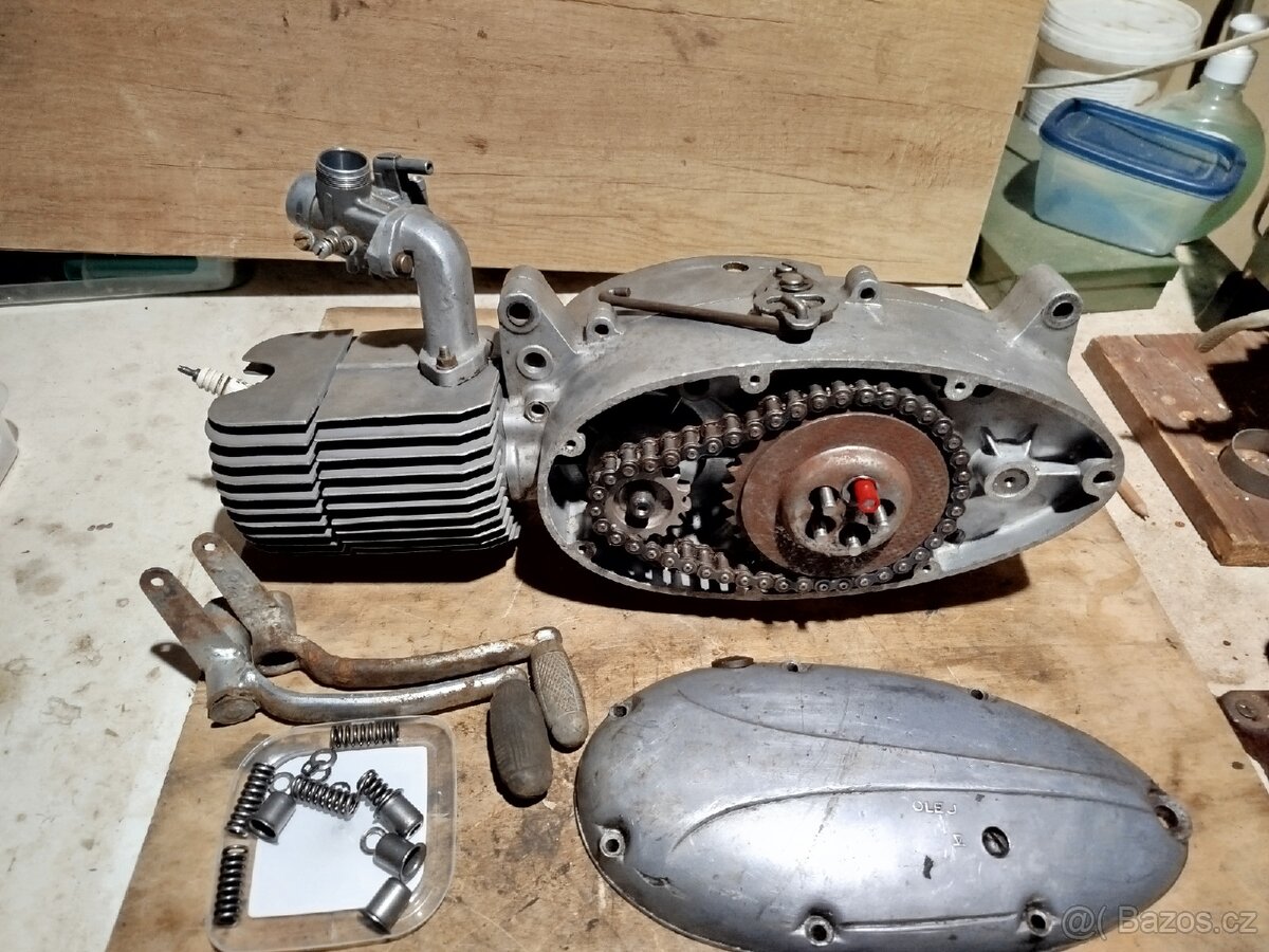 Prodám motor na Jawu Pionýr 20/21, nepoškozená přepážka, úchyty také v pořádku, jde protočit.
