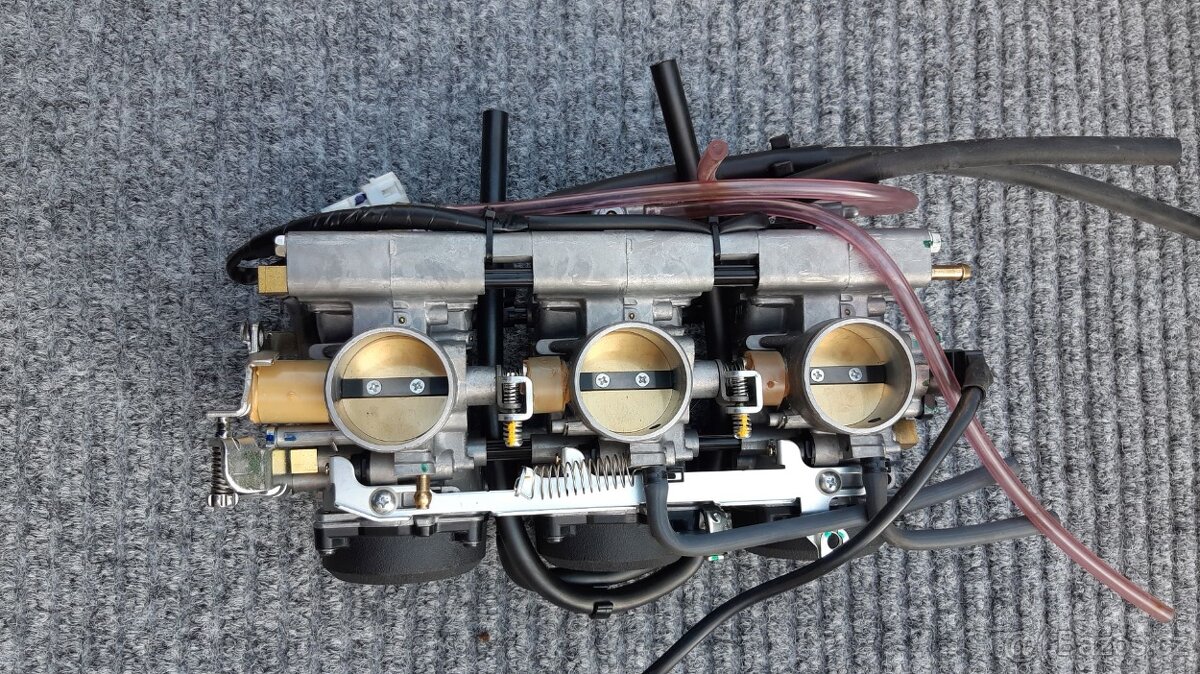 Prodám karburátory na sněžný skútr Yamaha RS Venture 8ES (na většinu tříválců), svody výfuku a podvozková kola dle obrázku, vše nové, nepoužité