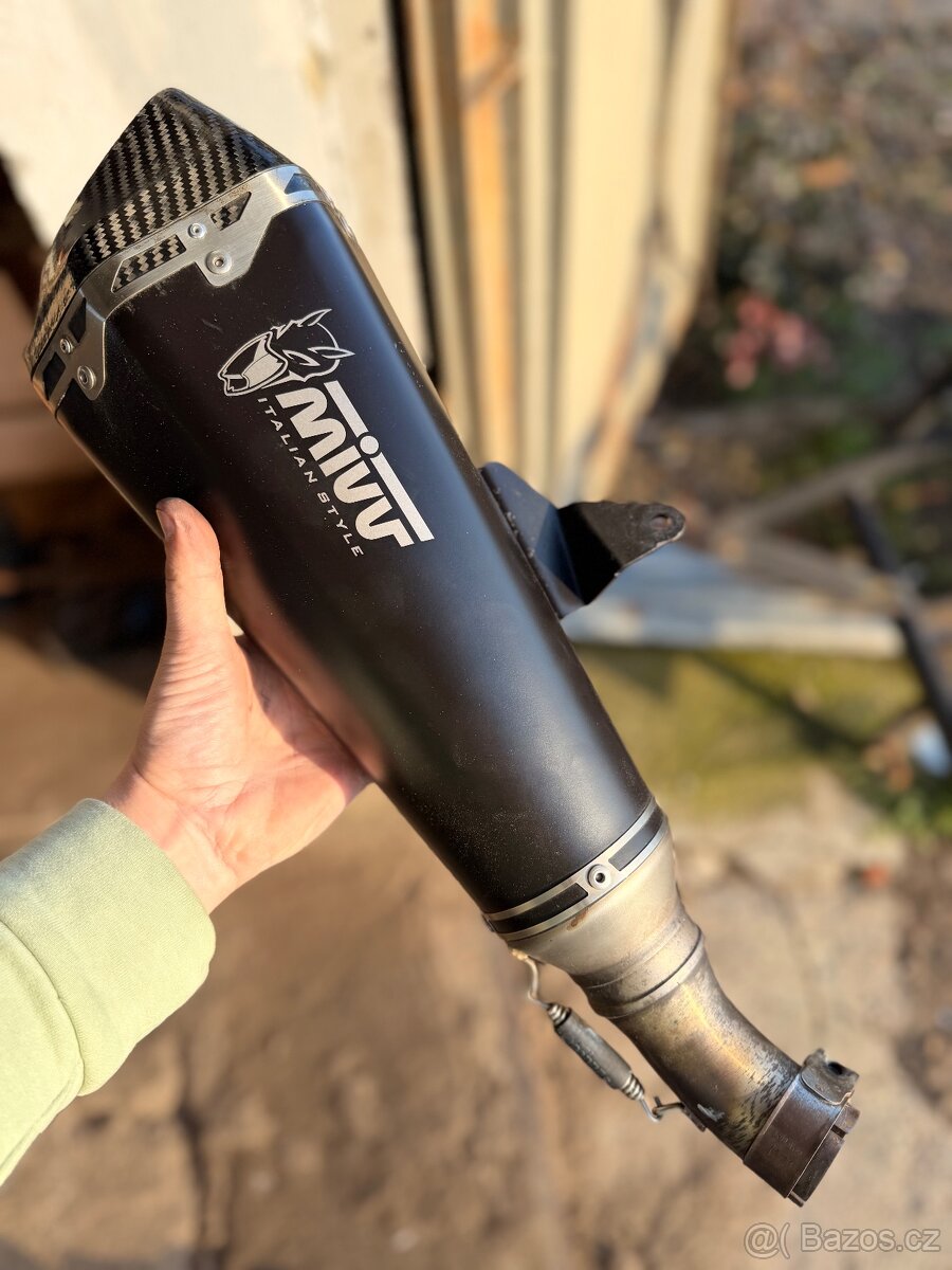 Titanový výfuk Mivv ME060 e11 0942 - [10.1. 2026]Prodám tlumič. Demontovaný z Ducati Hypermotarda 1100. Průměr na vstupu do trubky je cca 53mm.V případě zájmu volejte.
