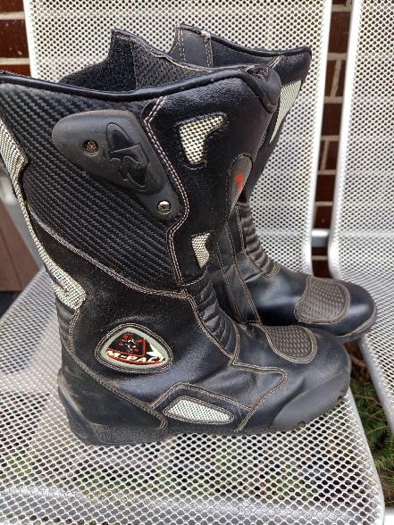 Černé cestovní motorkářské boty vel. 44-45 - [25.2. 2026]Prodám 4 roky staré černé cestovní motorkářské boty. Najezdil jsem s nima cca 7500+ km. Jsou v dobrém stavu viz foto podrážek. Na pravé jsem nedávno nechal vyměnit zip.