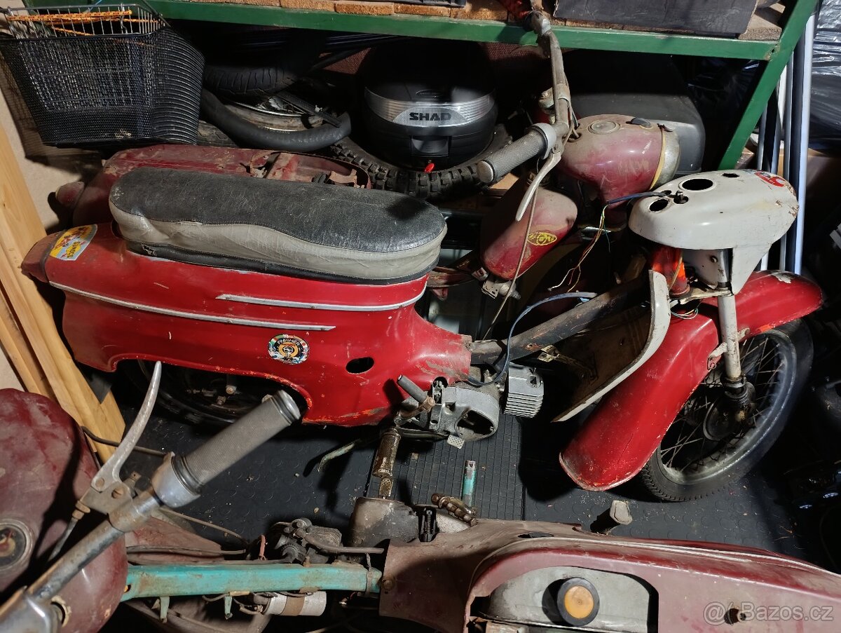 Přidám sadu zachovalých plechů (21), které se nemusí lakovat, jsou v původním laku s linkami, patina.Řídítka a výfuk na 21 najdu.