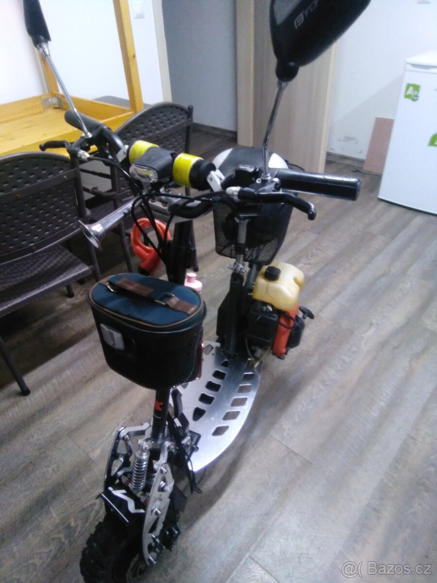 Prodám motoru benzínovou koloběžku 4 takt, která může na silnici. Nepotřebuje řidičák.