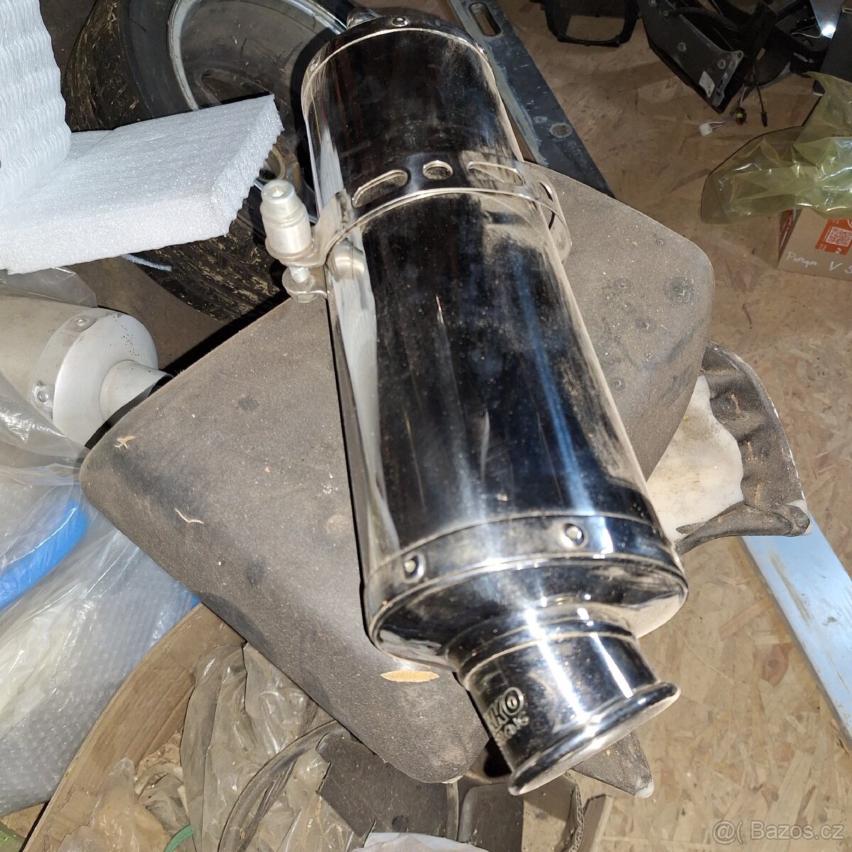 Prodám výfuk sundaný z Gsxr 750 r.v 92,svod originál a chybí mu kousek spod.hrdla.Mezisvod převařený originál.A koncový tlumič Nikko..krásný.Bez restriktoru.Cena,za komplet 4500kč.
