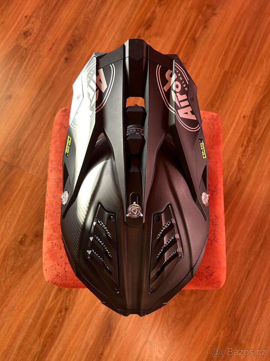 Prodám motokrosovou přilbu Airoh Aviator 3.0 velikost M.Přilba v Top stavu,pouze drobný škrábanec na plastovém vyměnitelném dílu-viz poslední fotka.
