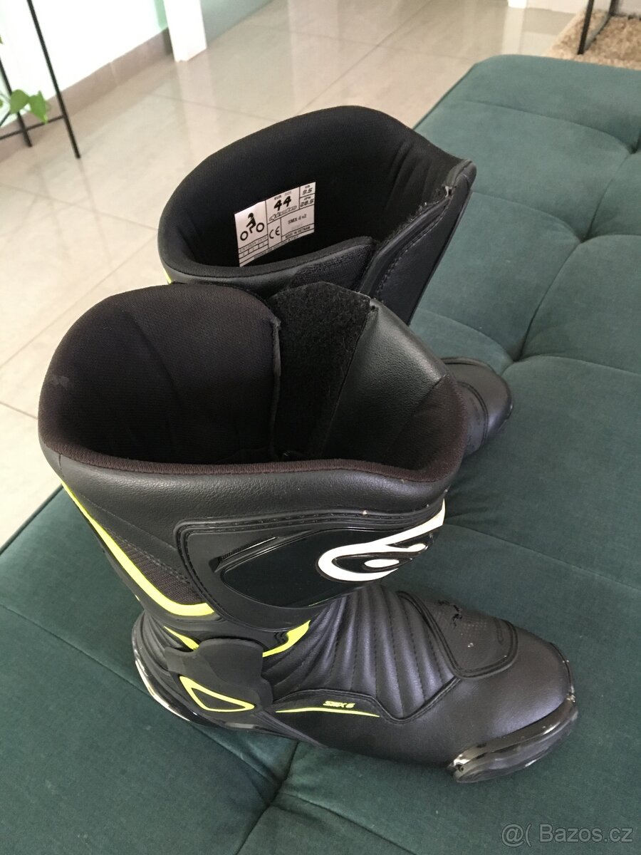 Prodám boty na motorku Alpinestar, komplet v keramické ochraně, oboje lehce prasklé na vrchu (viz foto)