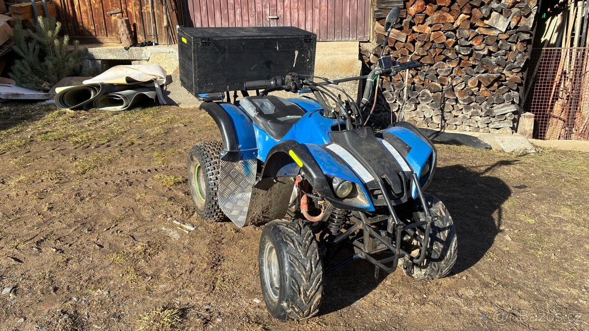 Dětská čtyřkolka, variátor- řazení pouze rychlost dopředu, nebo dozadu. Problém s elektrikou, někde mezi spínačem a startérem. Já na to nemám čas-chuť to řešit.