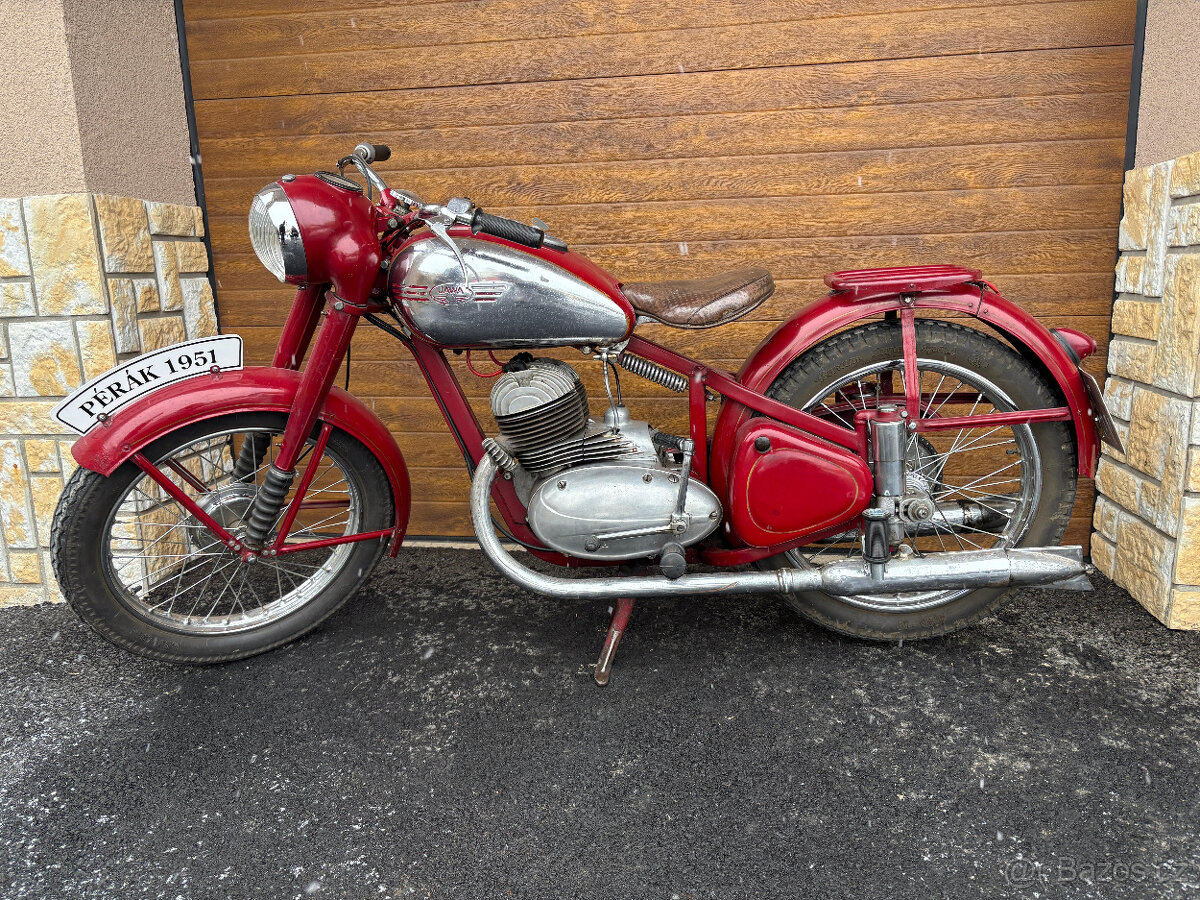 JAWA 250 Pérák r.v.1953 - TOP - [27.2. 2026]Prodám Jawa 250 Pérák, po kompletní pečlivé renovaci, občas projet, aby neustále fungoval tak jak má, ale jinak stojí ve sbírce. Opravdu výstavní kus. Jezdí se na něm velmi hezky, motor krásně chytá a pěkně táhne do kopce. Má krásný zvuk. Již byl reg ...