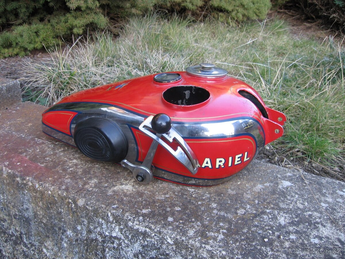 Prodám nádrž na moto Ariel. Nádrž je v bezvadném stavu, včetně chromu, viz foto.