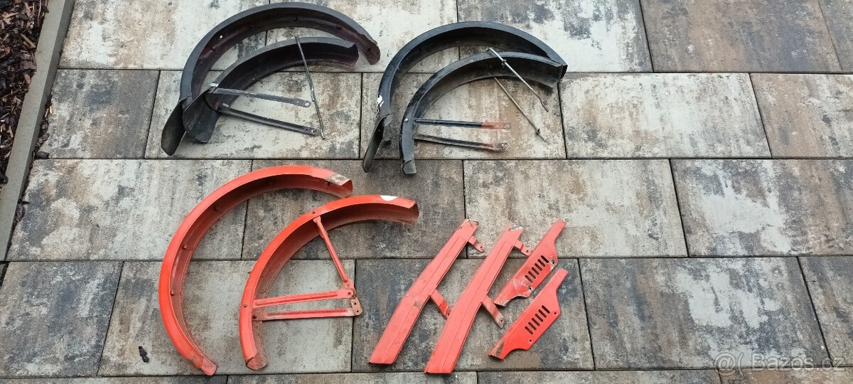 Prodám na babettu 210 přední a zadní blatník na nový typ řidítek, barva černá, cena za oba 500 Kč. Dále levý kryt řetězu 100 Kč a pravý kryt řetězů 150 Kč, ruzbe barvy. Červene blatniky již nejsou.
