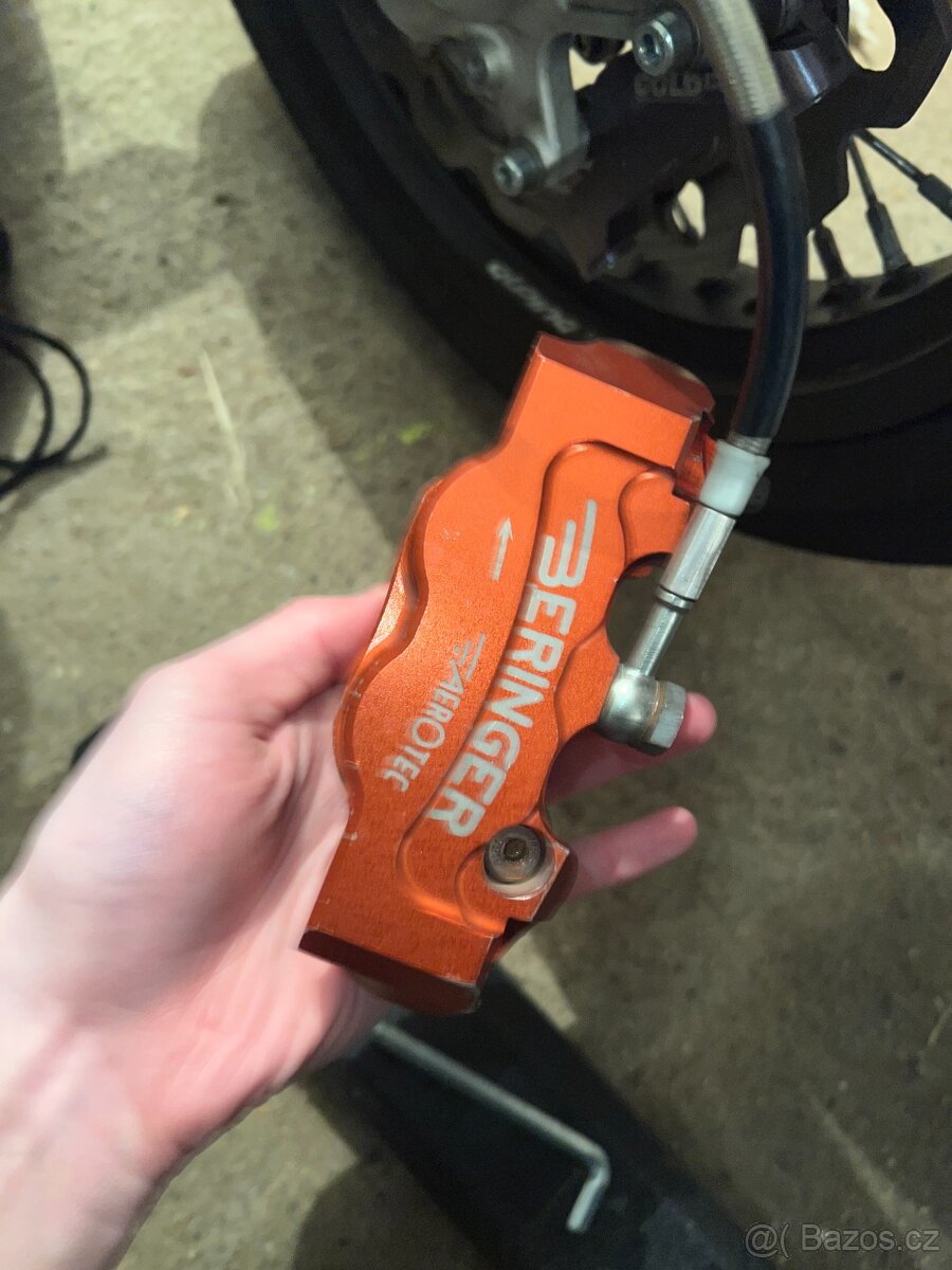 Prodám třmen beringer aerotec čtyřpístek. Rozteč šroubů 108mm. Vhodný na supermoto, superbike.
