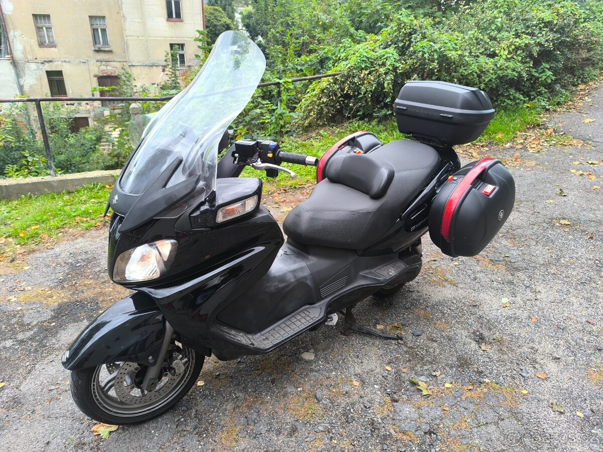 Prodám krasný velký cestovní skutr značky Suzuki Burgman Executive 650, r.v. 2011 najeto okolo 53000km, nove pneu přední i zadní, oleje filtry, velka kontrola. Není to pro žádného začátečníka, jede 180km/h, černá perleť. V ceně zadní kufr 48l, boční kufry+ držáky. Navigace Tom Tom, držák na telefon atd. Mnoho doplňků. Vyhřívané sedadlo řidiče i spolujezdce, vyhřívané gripy, elektricky nastavitelný štít, manuální řazení na řidítkách . Samozřejmě 2 klíče.Cena 72000kč, Vlastním 2 roky. Důvod prodeje přechod na enduro.