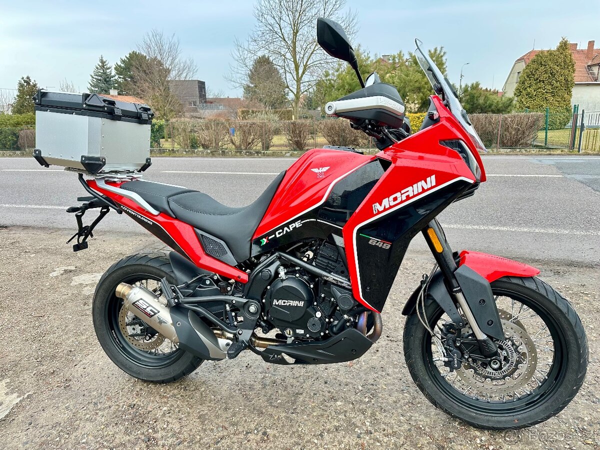 Moto Morini x cape 650, 2022, najeto cca 20 tis km, originální stav, nehavarovaný motocykl, po 1.majiteli, pěkné pneumatiky, laděný výfuk SC project plus originální výfuk, zadní hliníkový topcase, držák spz, možnost úvěru od Essoxu nebo Cofidis