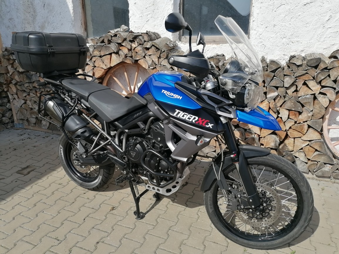 TRIUMPH TIGER 800 XC ABS, r. 2015 v super stavu, tempomat, mapy, najeto 35tis. km, blastry, padací rám, centrál kufr GIVI + boční nosiče = možnost nových bočních ALU GIVI kůfrů stříbré nebo černé , centrál stojan, originál stav, nebourané, nové pneu + řetězovka ok, na přihlášení IT TP - po dohodě vše zařídíme, možnost na splátky ESSOX, VOLAT 604895158. MOTOBARN Medlešice čp. 3