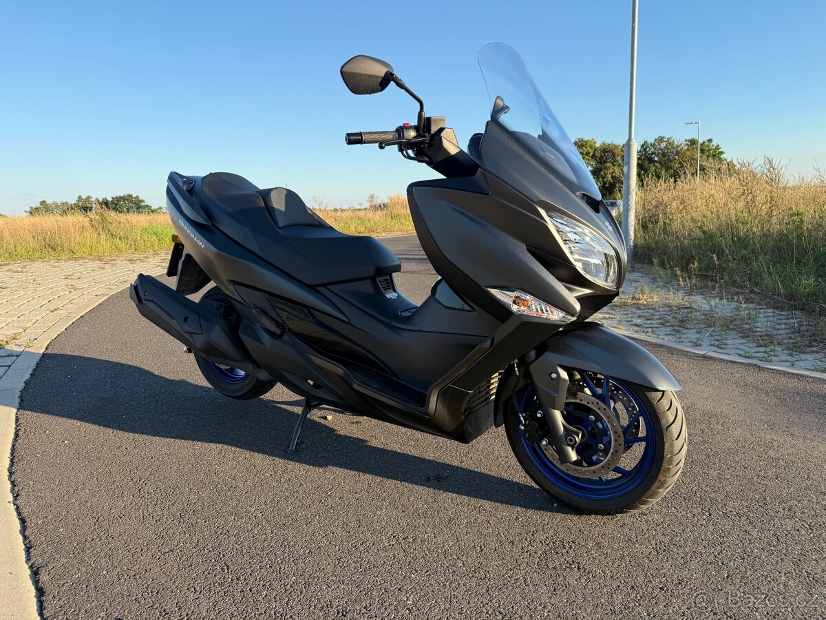 Suzuki Burgman 650 - [26.2. 2026]Koupeno v ČR 9/17, naj. 27000km, servisní knížka, 2 klíče, kufr Givi Maxia, držáky bočních kufrů, navigace, bez investic, připraveno na sezónu.