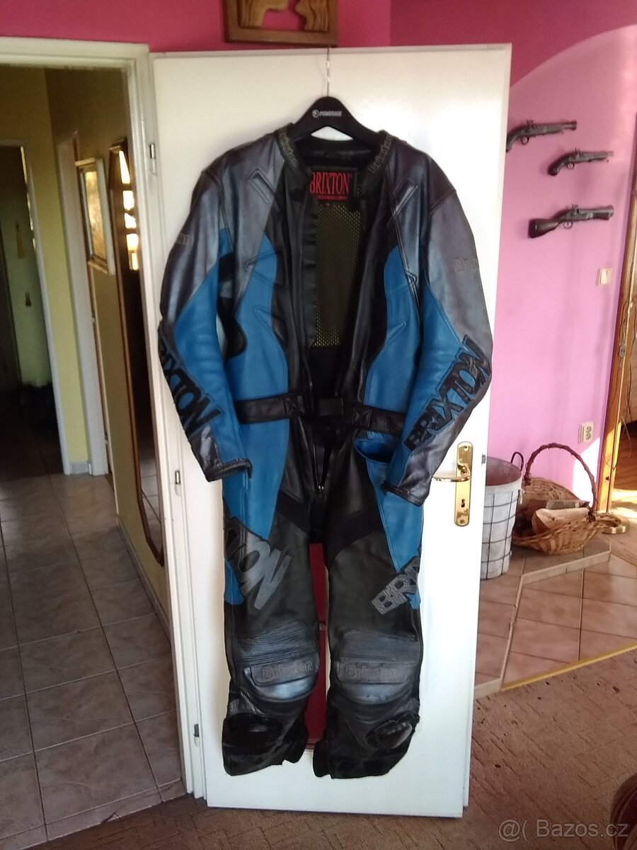 Prodám pánskou koženou kombinézu značky BRIXTON.Velikost 58,pas 106cm, hrudník 110cm, výška 180-190cm.Dvoudilná,s chrániči,ramen, loktů a kolen.Výztuhy páteře,a boků-kyčlí.Velmi kvalitní kůže, udržovaná vždy po sezoně promazaná,nikde nepotrhaná,všechny zipy funkční-zanovní stav.Velmi málo používaná.Malá oděrka na zadní části viz foto,jinak bez vady.