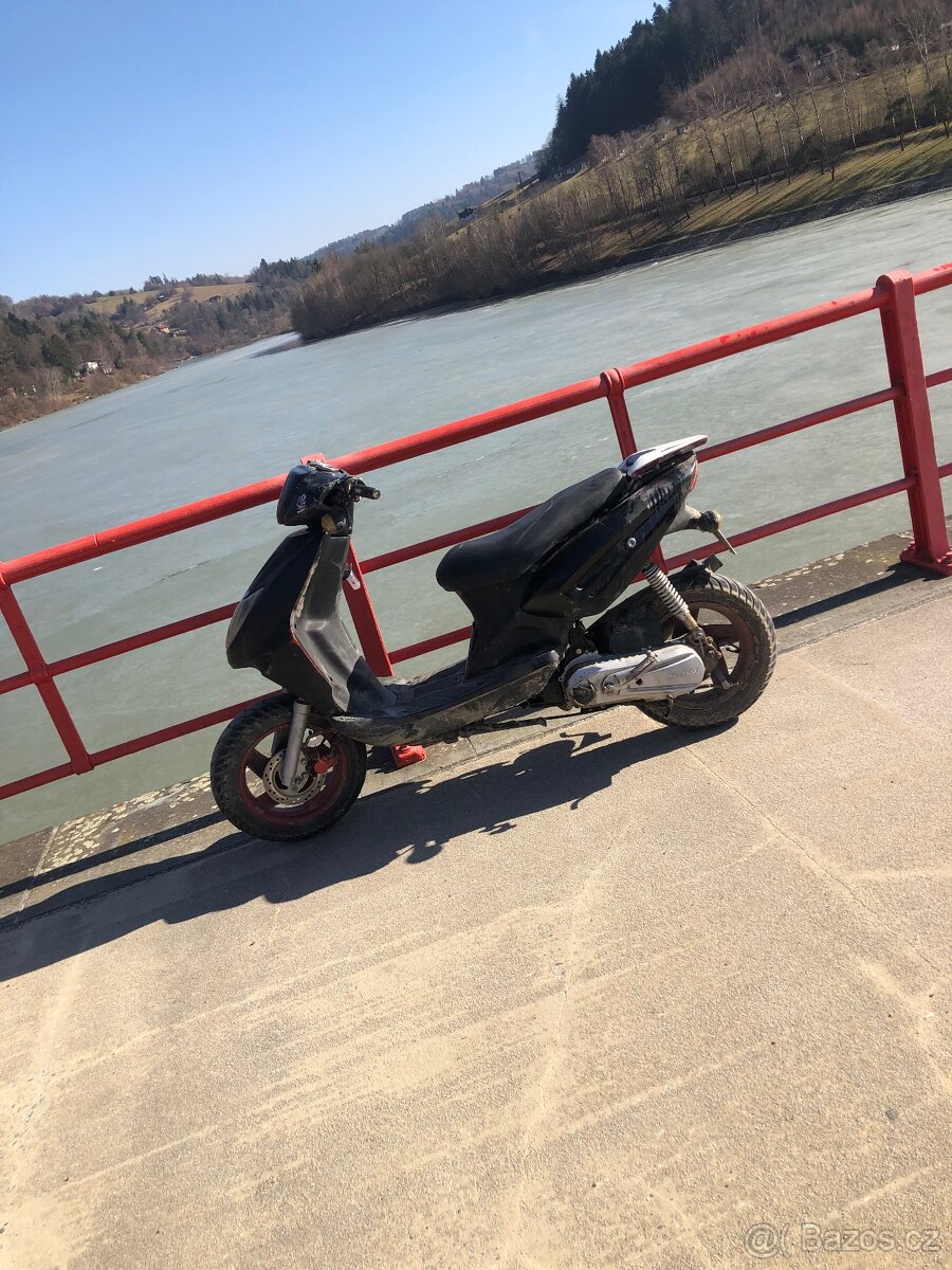 prodám skutr s obsahem 50ccm, podobné jako yamaha aerox, skutr jede krasně - svíti, blinkry fungují, dalkové světlo též, jediné co je potřeba dodělat je dokoupit baterii, a udelat zavit na vyfuku trosku popraskané plasty