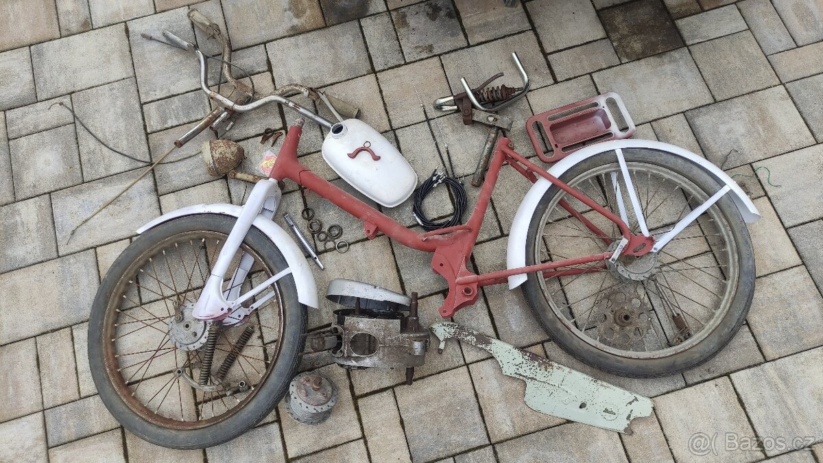 Nabízím stadiona S11 ve stavu jak je na foto. Před 15lety započala renovace - červená a bílá základovka. Ostatní díly před renovací. Motor na kompletní go a dokompletovaní.