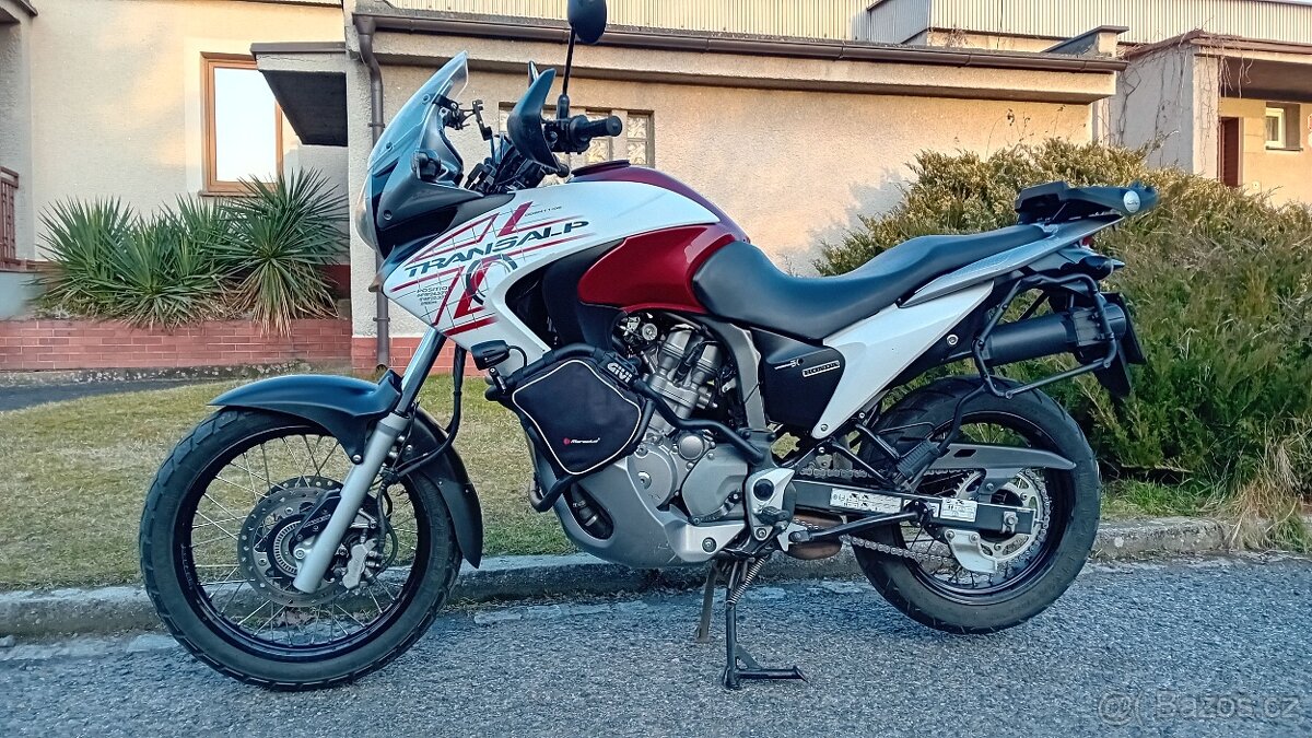 Prodám Honda Transalp XL 700VA v pěkném udržovaném stavu. Rok výroby 2011, koupeno v ČR, druhý majitel, 44 kW, najeto 35 370 km, STK do 06/28, moto pravidelně servisováno, vše plně funkční, nikdy nehavarováno. Obě pneu tak 15% (přezuto 2021 na MetzelerTourance). Ve 27 500 km velký servis - nová řetězová sada, nové svíčky, nové těsnění ventilového víka, kapaliny atd. ABS, baterie Exide 2024, hlavní stojan, padací rám vč. brašen, přídavná světla SEFIS, zásuvka USB, držáky zadního + bočních kufrů včetně kufrů, brašna na nádrž, hrazda na mobil, rozšířený boční stojan, prodloužený přední blatník, od všeho 2x klíče. Motorka má drobné kosmetické opotřebení z provozu.