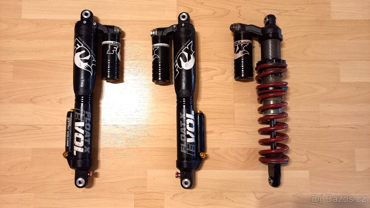 Prodám přední tlumiče FOX Float X Evol Gen II a zadní tlumič FOX Podium X. Vynikající stav, po repasi najeto O mth. Přední mají rozteč cca 47 cm, zadní cca 45 cm. Již je nevyužiji.