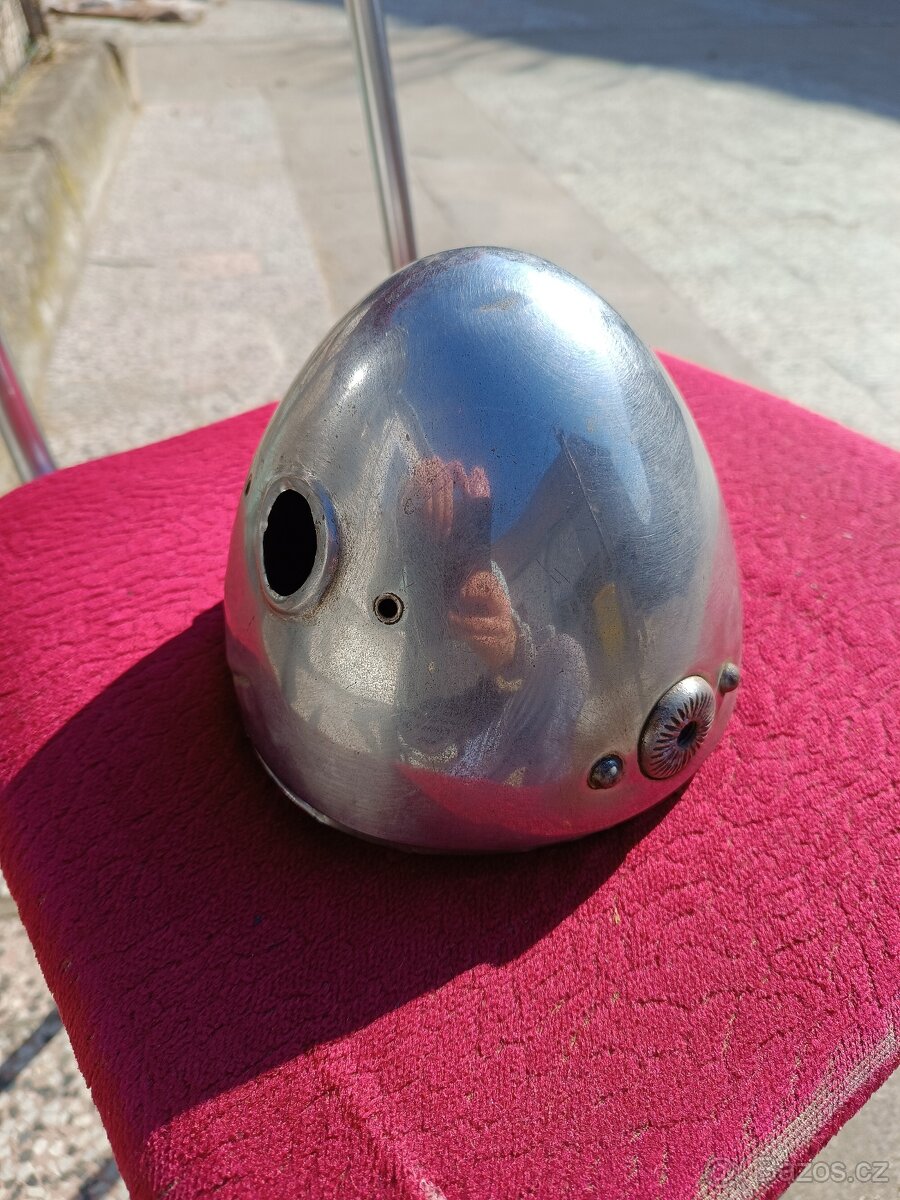 Prodám hrnec světla na Jawu Speciál. Jedná se o originální díl v pěkném původním stavu. Ideální na platinove moto v původním stavu. Stav viz foto. U horního okraje lemu trochu ťuknuto, třeba opatrně vyrovnat. Cena 4400,-Kč. Prodávám jako starý díl bez záruky. Buď osobní předání v Brně, nebo možné zaslání zásilkovnou po platbě předem na účet.