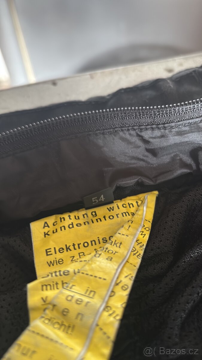 Dvoudílná moto cestovní textilní kombinéza vel. L - [15.3. 2026]Dvoudílná cestovní textilní kombinéza vel.L. Bunda: Celková délka: 80cm, obvod hrudi 120cm, obvod pasu max.100cm, dá se upravit páskem, délka rukávu od ramene:70cm.Regulace obvodů paží. Protektory loktů,ramen a páteře. Membrána REISSA, zapínání na zi ...