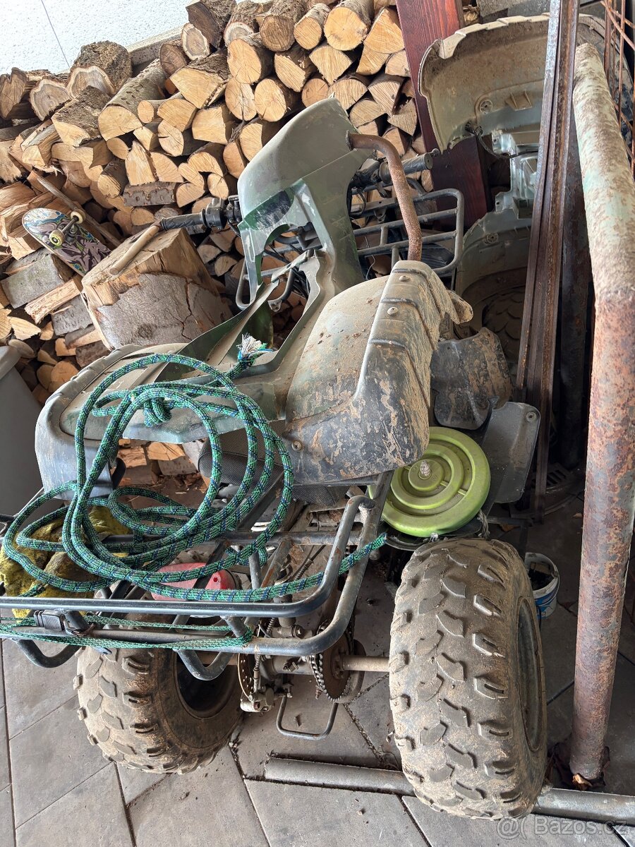 Čtyřkolka je rozebraná a v opotřebovaném stavu, na názoru je malá díra, která se dá zavařit.