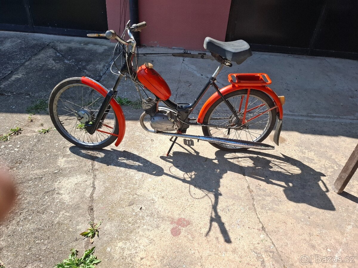 Stadion s11 bobber stavba - [8.3. 2026]Prodám stavbu mopedu Stadion S 11.Základem je stadion s motorem po go,spojkou na levé noze,na pravé noze brzda na obě kola současně,řazení pákou pod nádrží.Zadní kolo ráfek Babeta,střed kola S 11.Odpružení sedla listovým perem z Trabanta.Jen osobní o ...