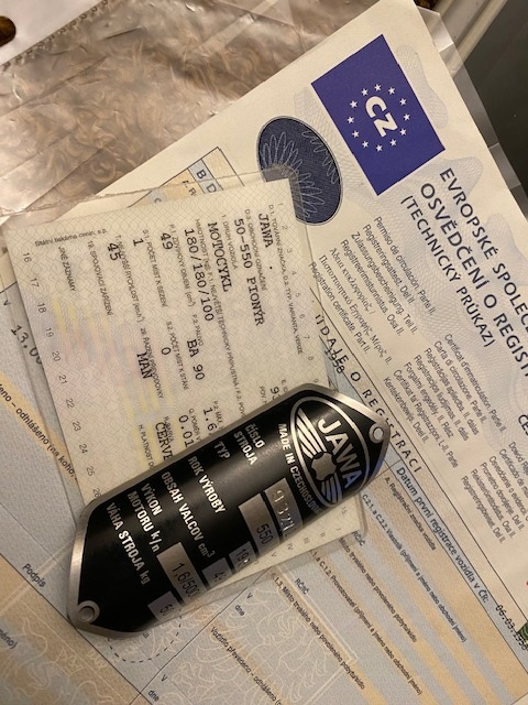 Prodám na Jawu 550 pařez, planý technický průkaz, štítek, a spz + nepoužitelný rám. R.v.1958. Malá okresní značka OS - (Ostrava). Pojištění celou dobu placené, přihlašené na mou osobu. Vlastním 15 let.