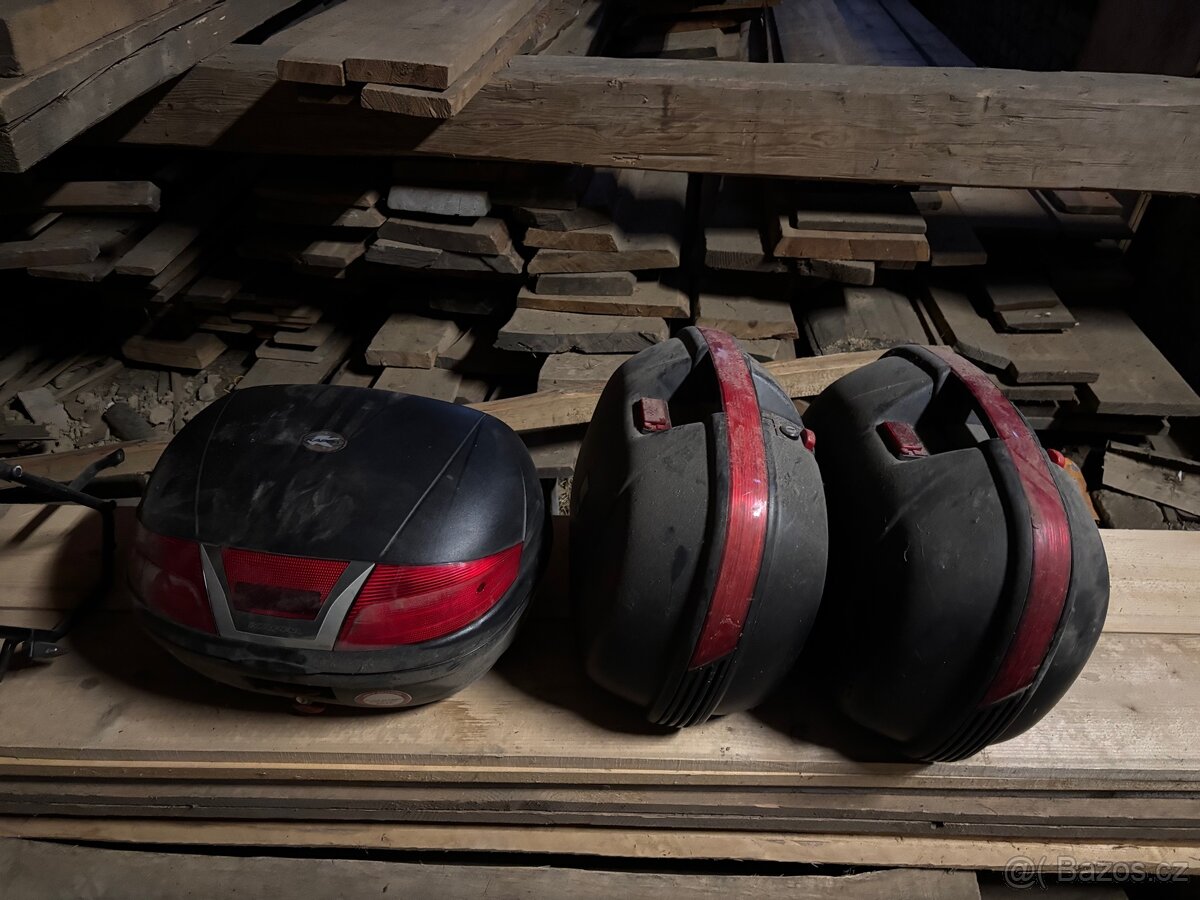 Dobrý den, prodávám tyto kufry na motorku Honda CBF 600 kufry jsem od koupi motorky nevyužil ke kufrům jsou originální držáky a plachta na motorku, pouze osobní odběr okolí Frydek-Mistek